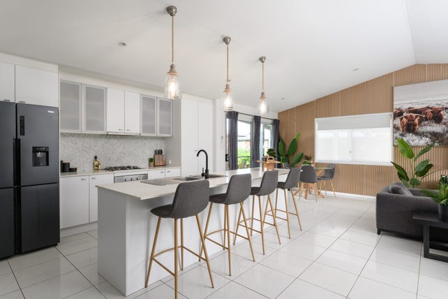 The heart of this home is the stunning, modern kitchen — an absolute showstopper. Designed for both style and functionality, it boasts sleek pendant lighting, stainless steel appliances, and a gas cooktop. With expansive bench space, it's perfect for cooking up a storm or entertaining guests, offering the perfect balance of form and function.