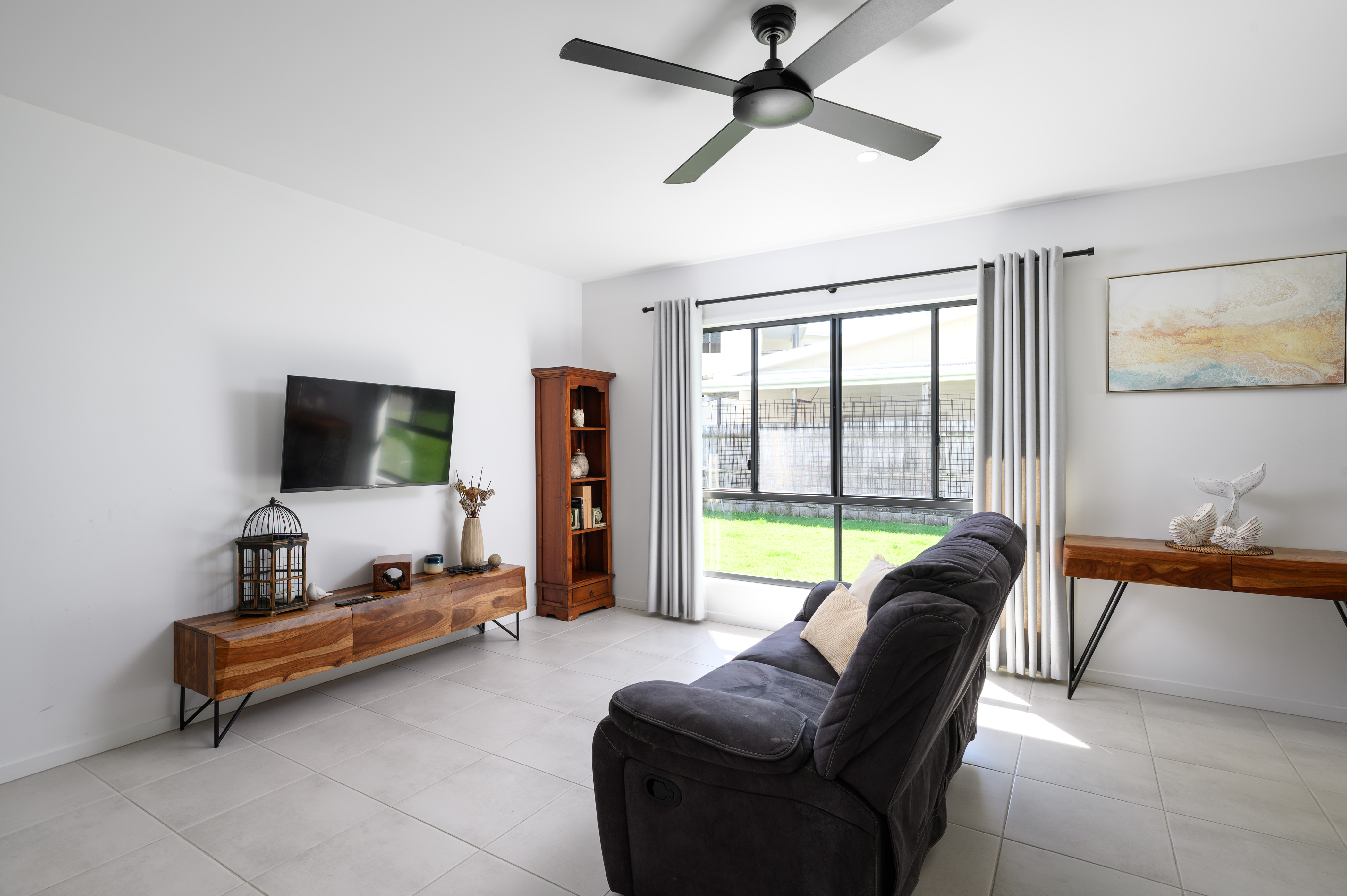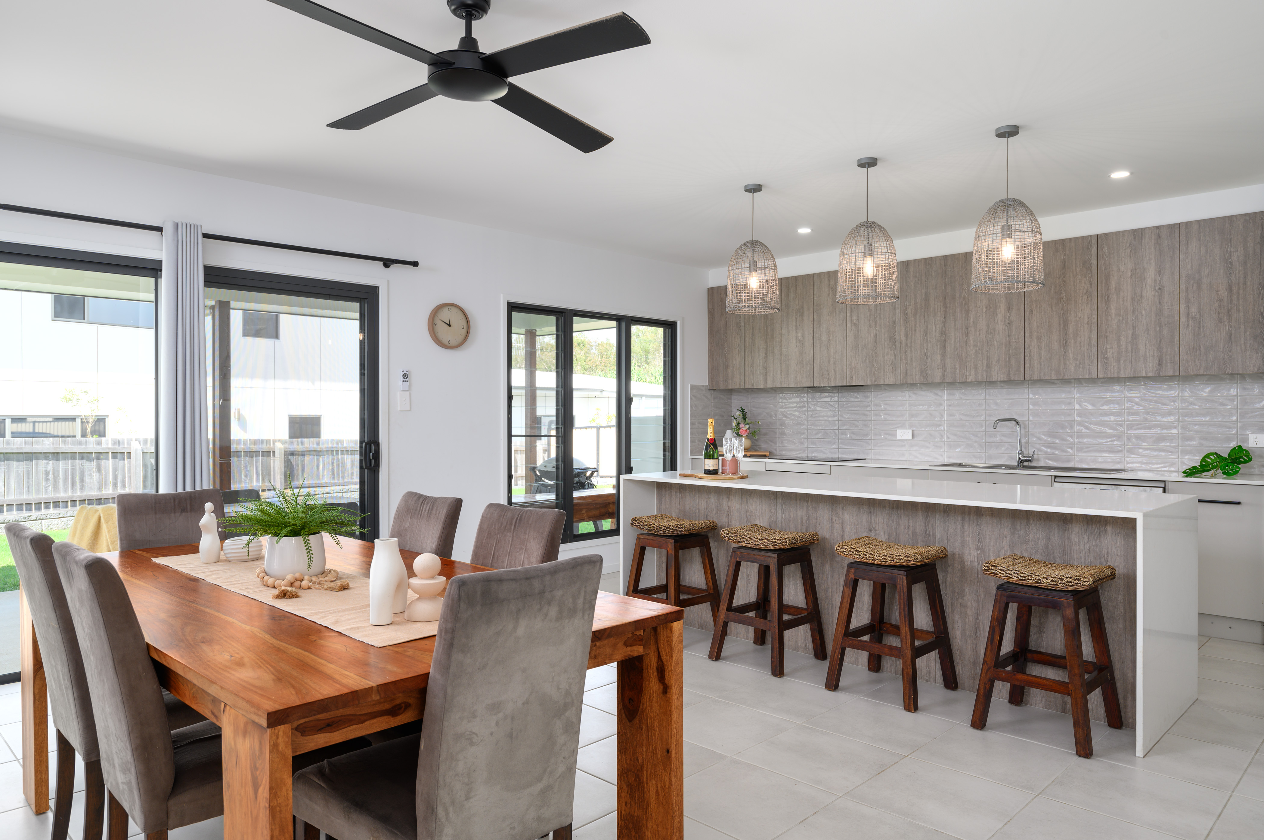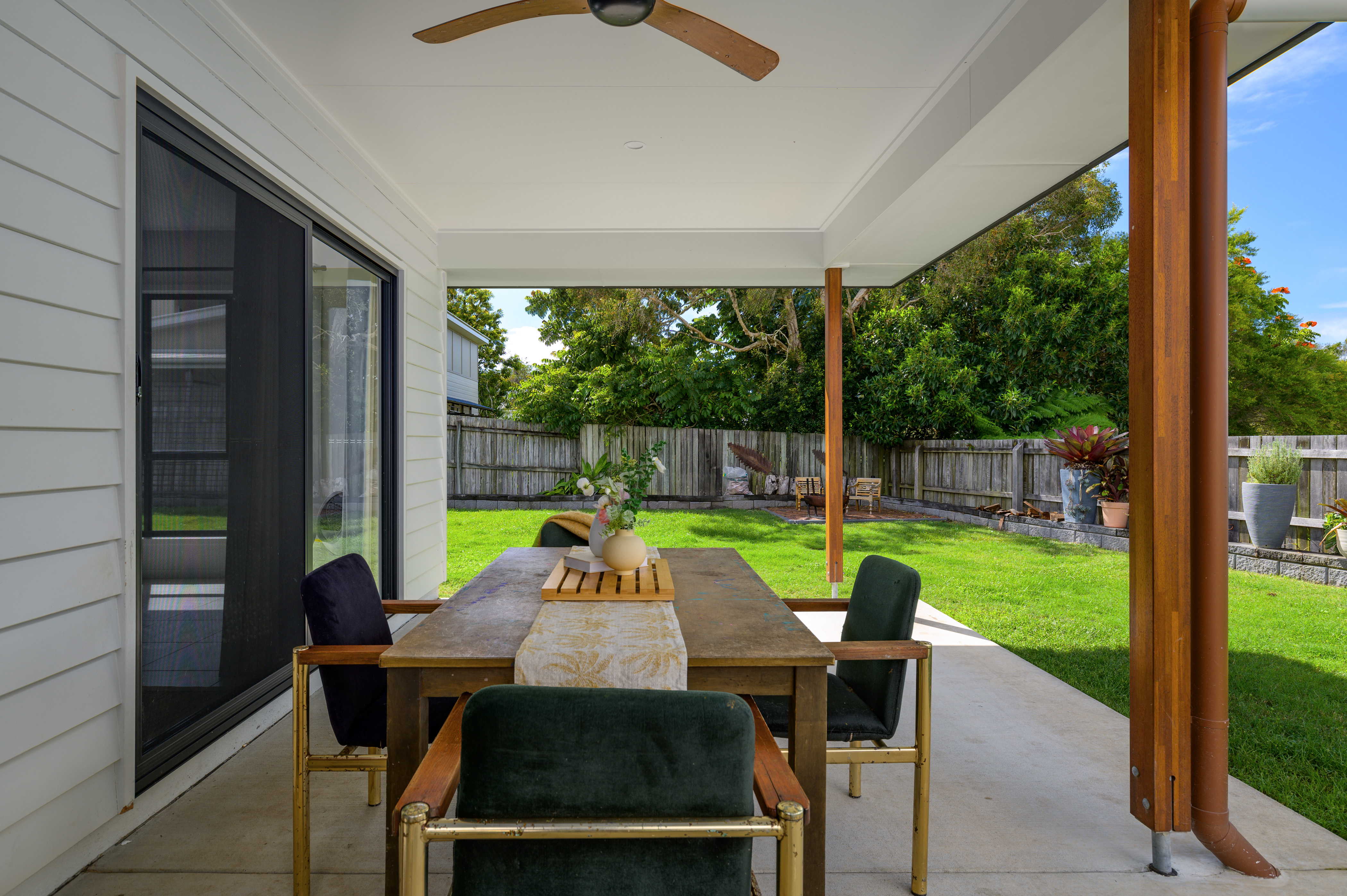 Entertaining is a must here – the entertaining area opens out from the open plan living with sliding doors and a generous undercover patio complete with ceiling fans, giving holiday vibes! The gardens and grounds are beautifully manicured. Sitting out here feels relaxing, with a glass of wine in hand or a nice book, it's a must!