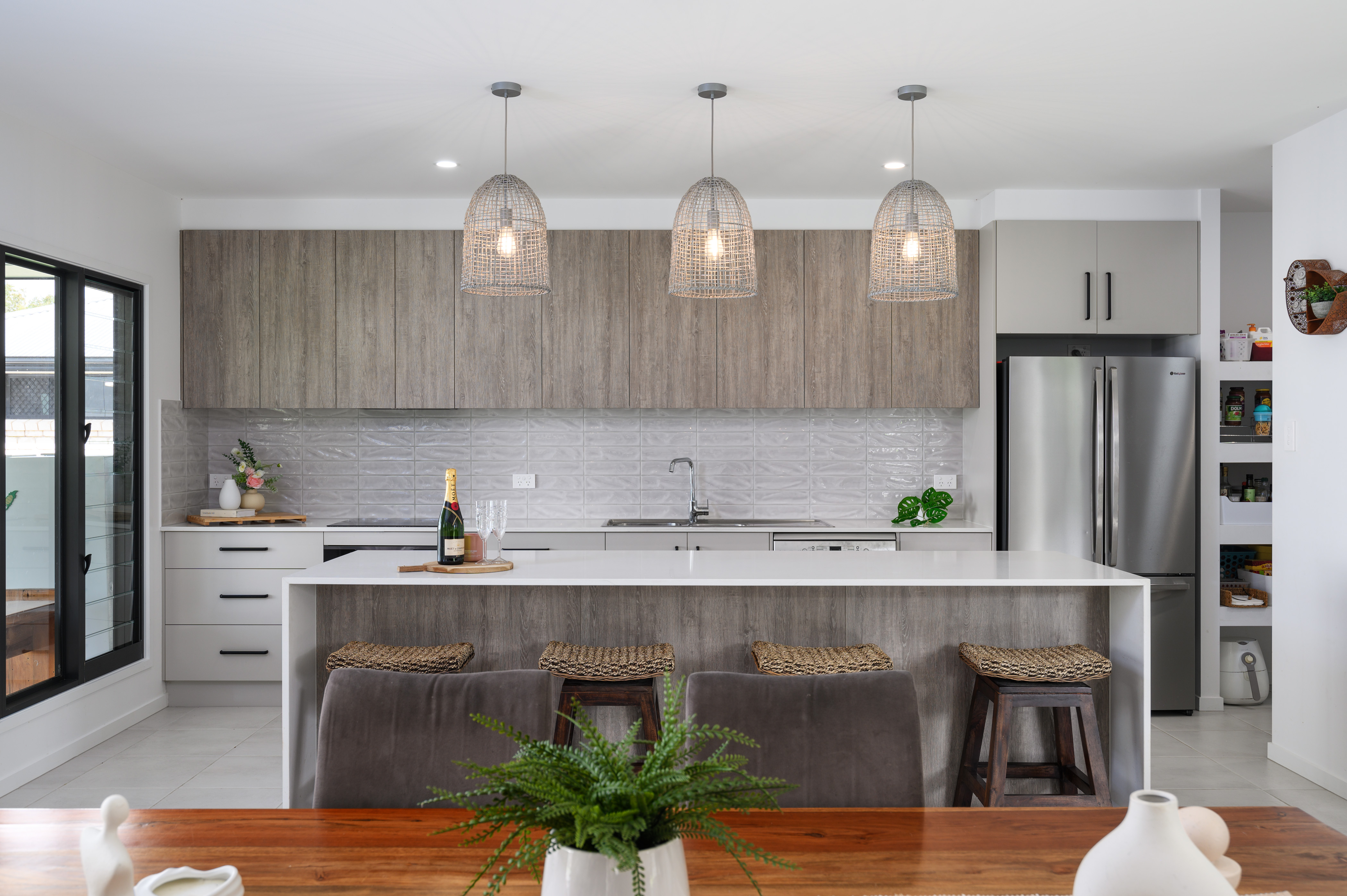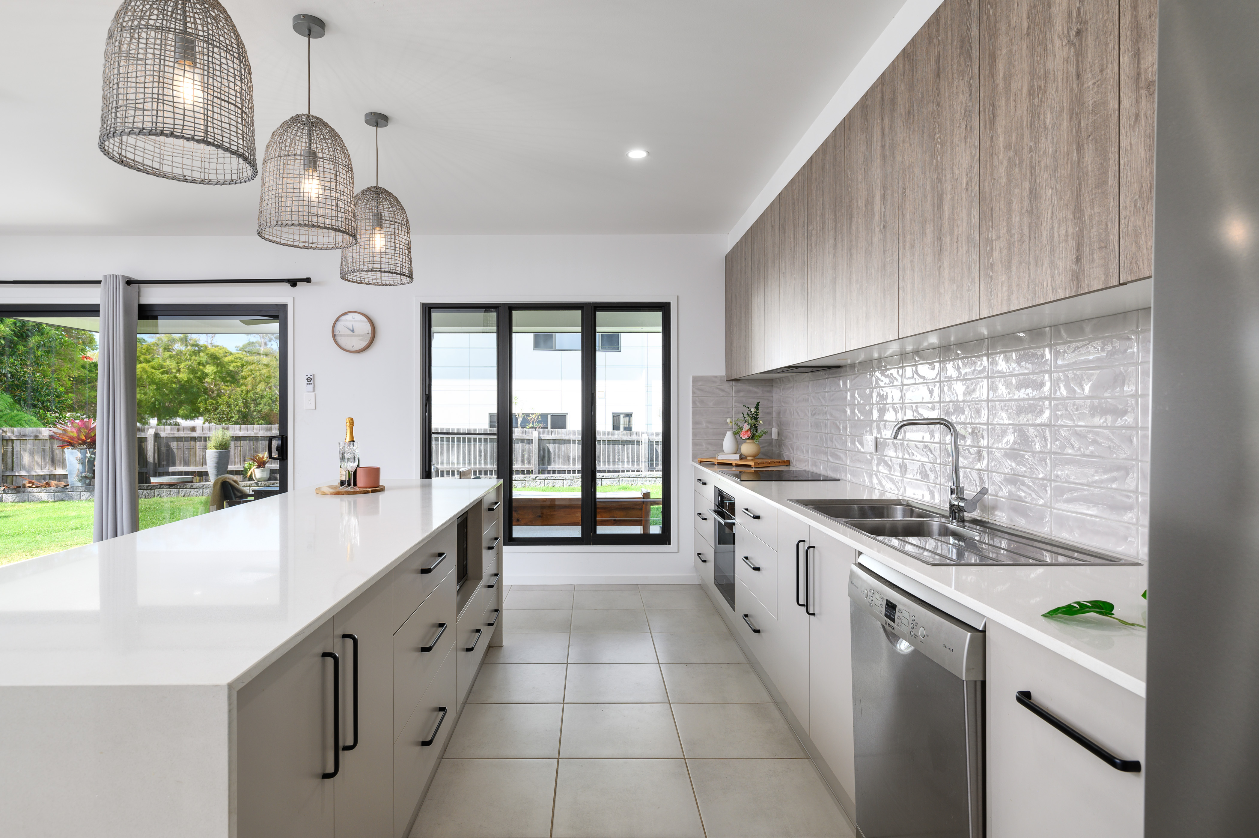 The kitchen is the hero of the home, very spacious with a large 2.7m island bench and gorgeous feature pendants, worthy of a magazine cover. Ample overhead storage, drawers, an induction cooktop, dishwasher, and butler's pantry make this the dream kitchen.
