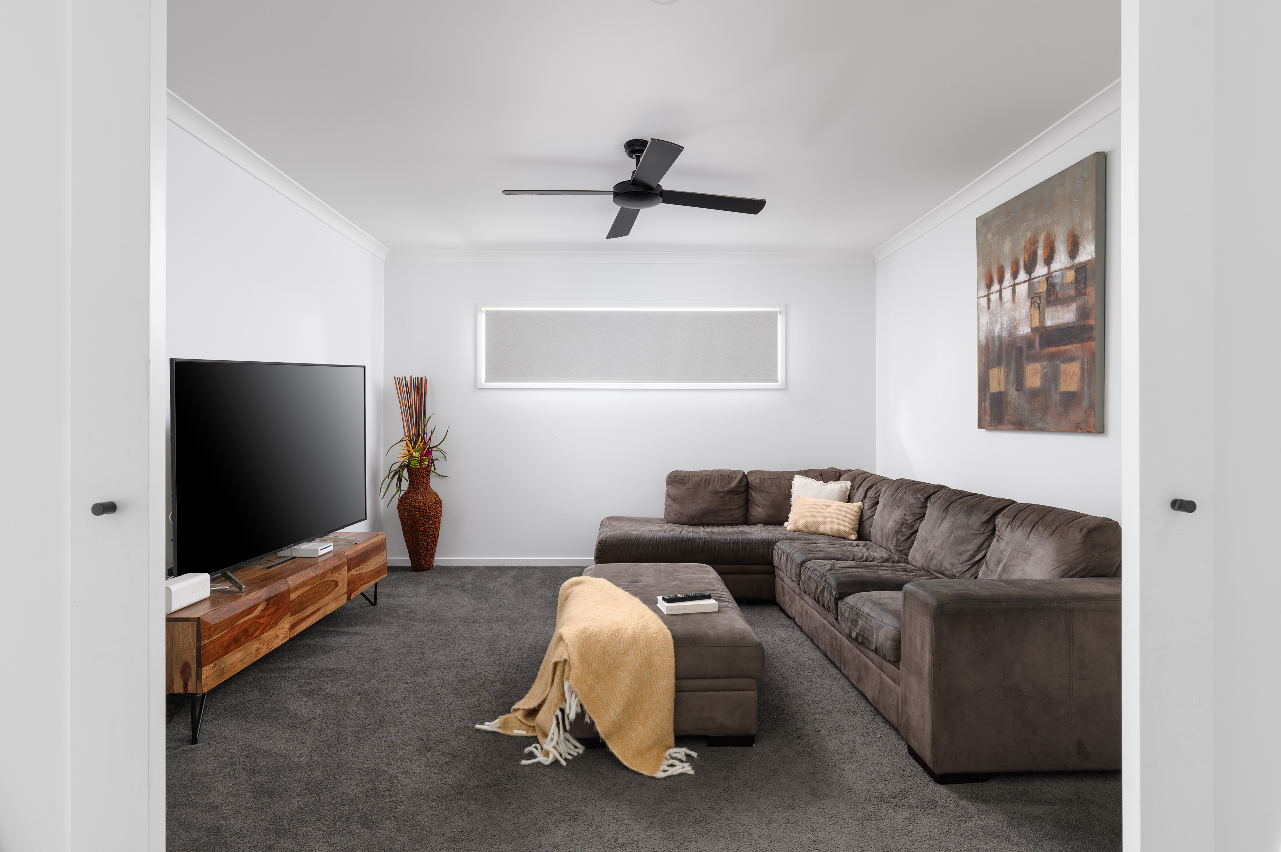 A cosy media room with gorgeous barn doors is such a feature and the perfect spot to sit back, relax, and watch your nightly shows or enjoy a movie.