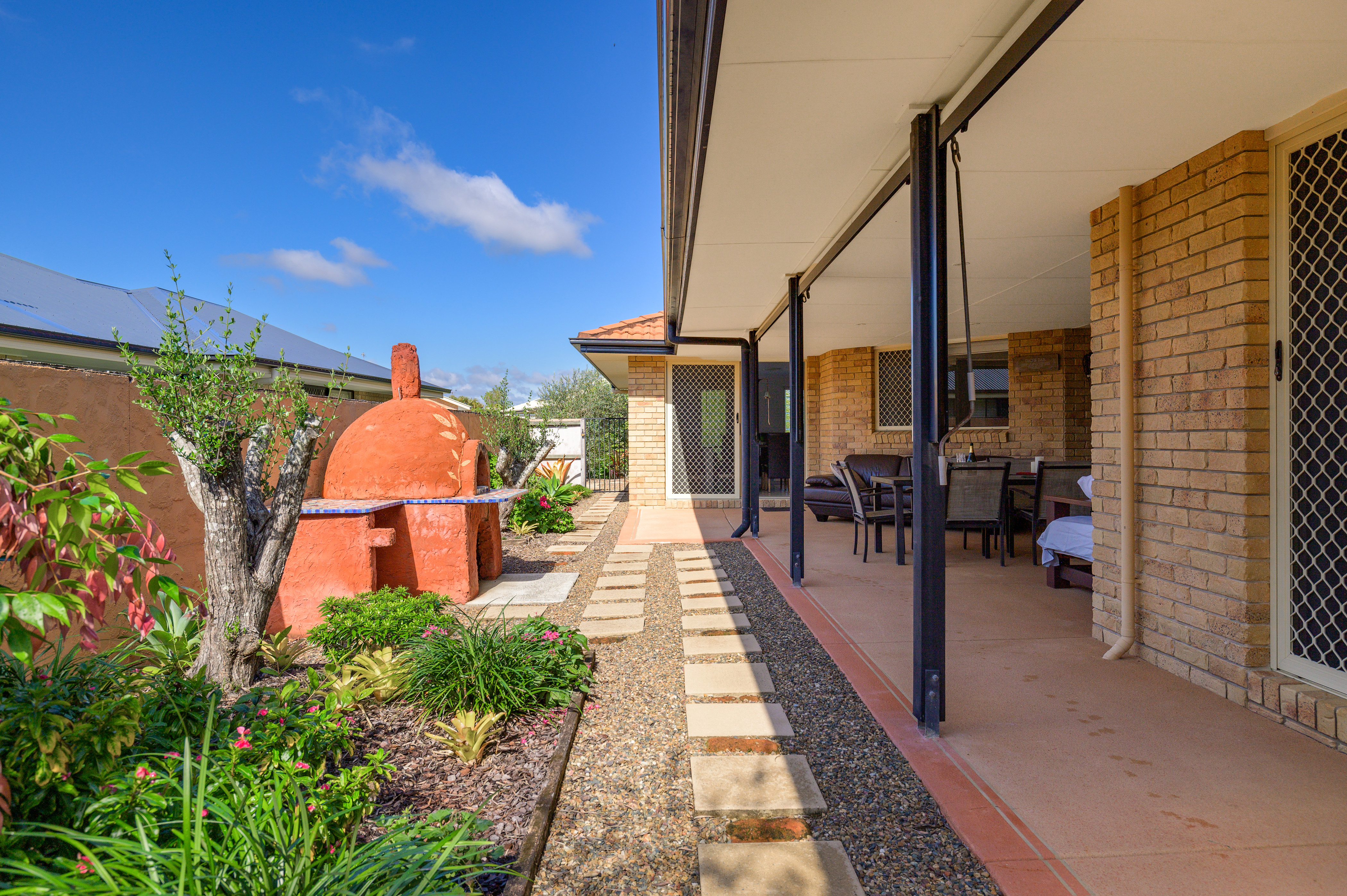 Entertaining is made effortless with the expansive outdoor area. The large, covered entertaining space is perfect for gatherings, while the included pizza oven adds a unique touch, ideal for hosting memorable events and enjoying outdoor dining experiences.
