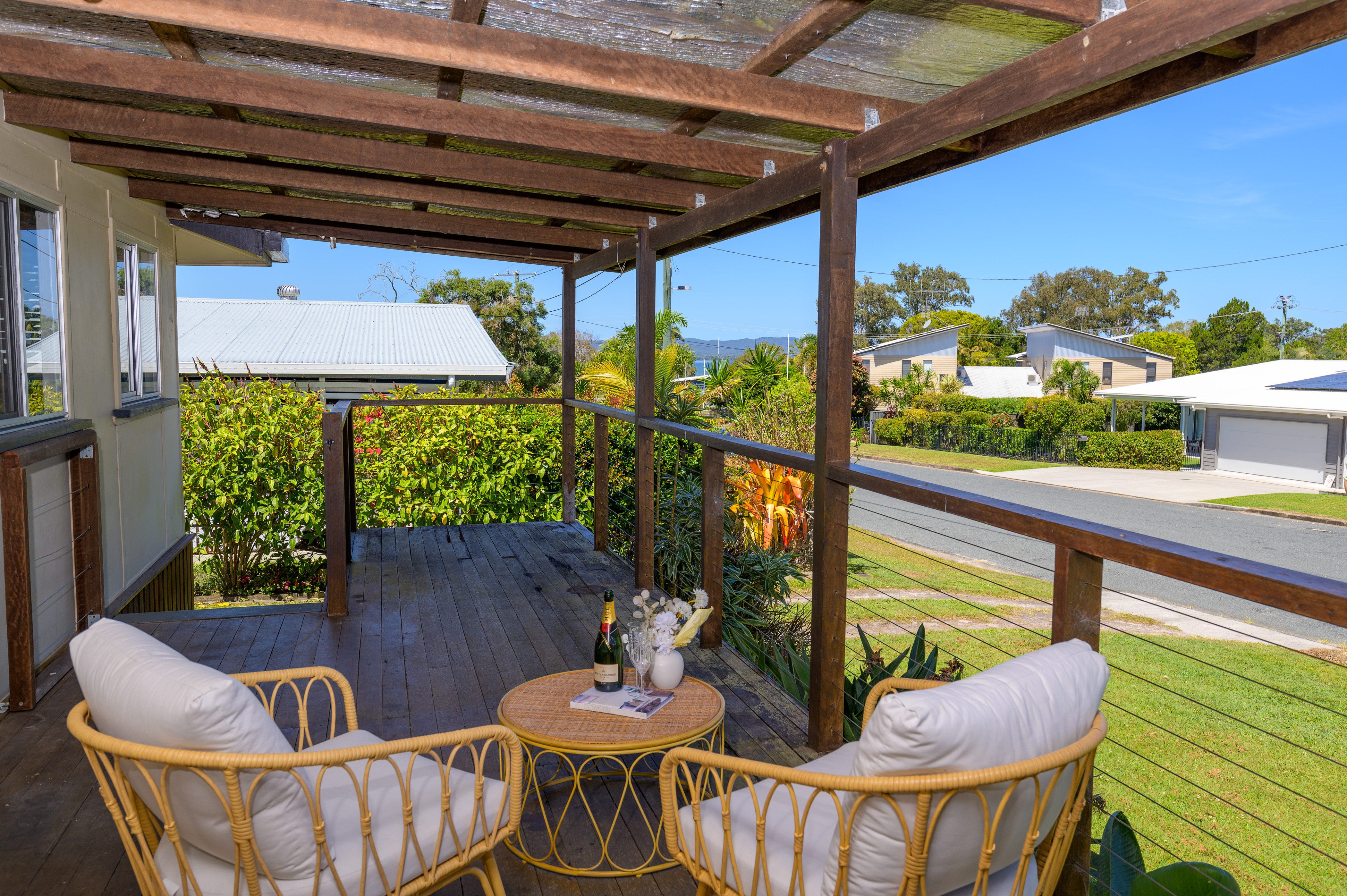 Let us take you on journey - The sun is starting to set, you are having a glass of wine on the front deck, relaxing and enjoying the cool ocean breeze. You catch glimpses of the bay, through the trees and there is a hint of salt in the air.