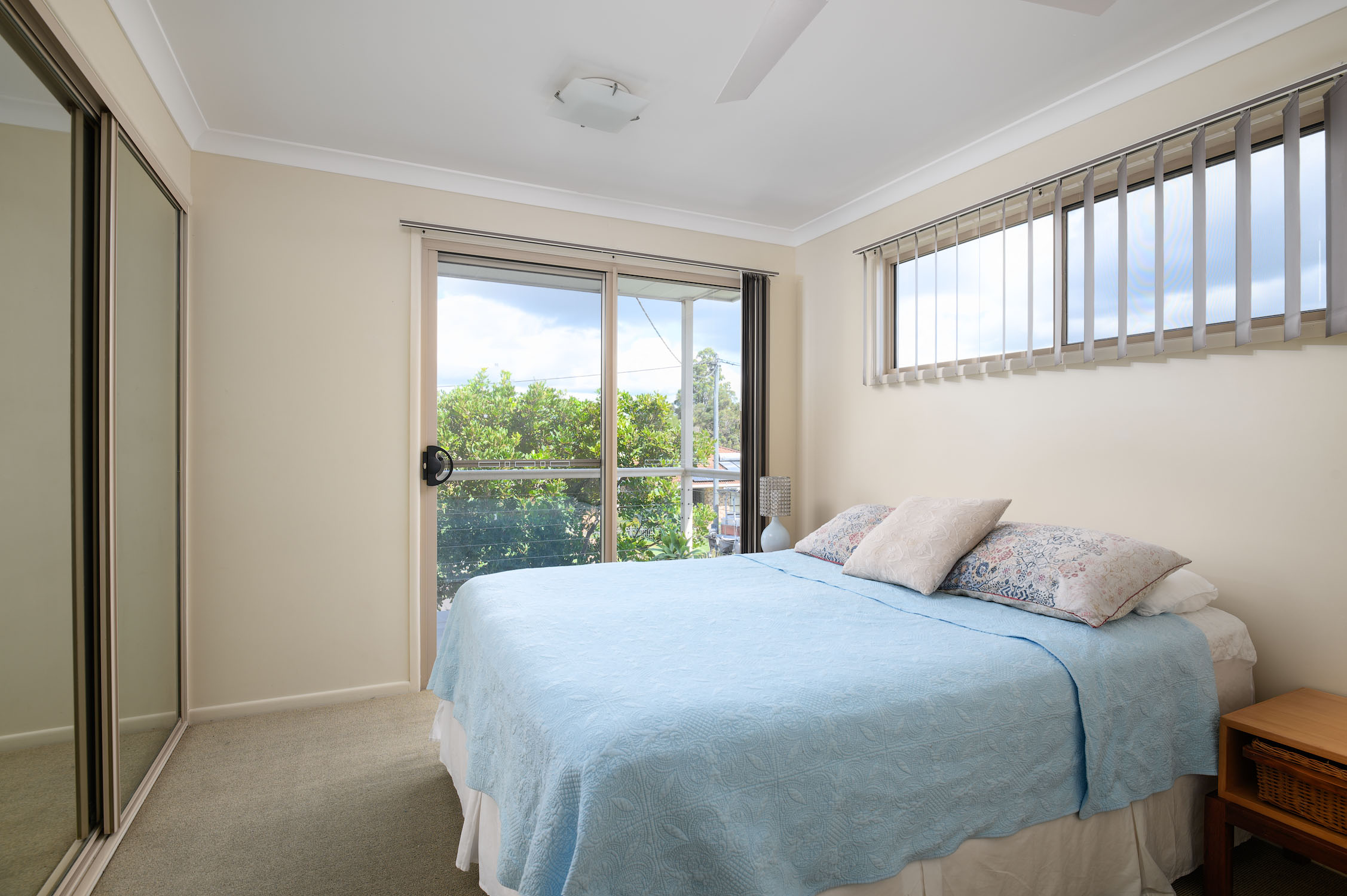 Key Features: - Three spacious bedrooms, two fitted with built-in robes - Two bathrooms including an exclusive two-way bathroom off the master suite - Open plan living area integrating kitchen, dining room, and lounge - Two private balconies extending from the main living area and upstairs bedrooms - Kitchen equipped with dishwasher for added convenience - Located on Bass Street within quiet complex